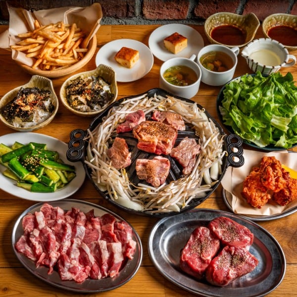 ラムロック&ラム肩ロース スライス/グリーンサラダ/ポテトフライ〈チーズ&ケーキ〉/若鶏のざんぎ/たたききゅうり/ジンギスカン用野菜・タレ(玉葱・もやし・タレ)/ジンギスカン専用ライス&スープ/カタラーナ