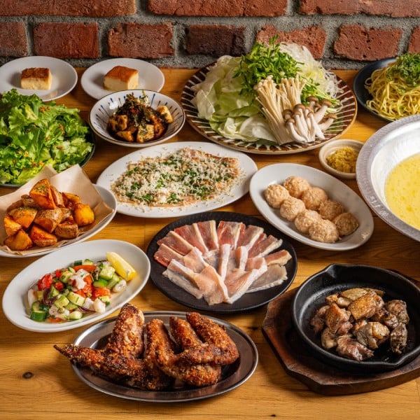 濃厚鶏白湯スープの地鶏鍋/〆葱ラーメン/芽室枝豆/グリーンサラダ/新得地鶏たたき 山わさび/新得地鶏炭火焼/ホイップポテト〈チーズ&ペッパー〉/若鶏のざんぎ/カタラーナ