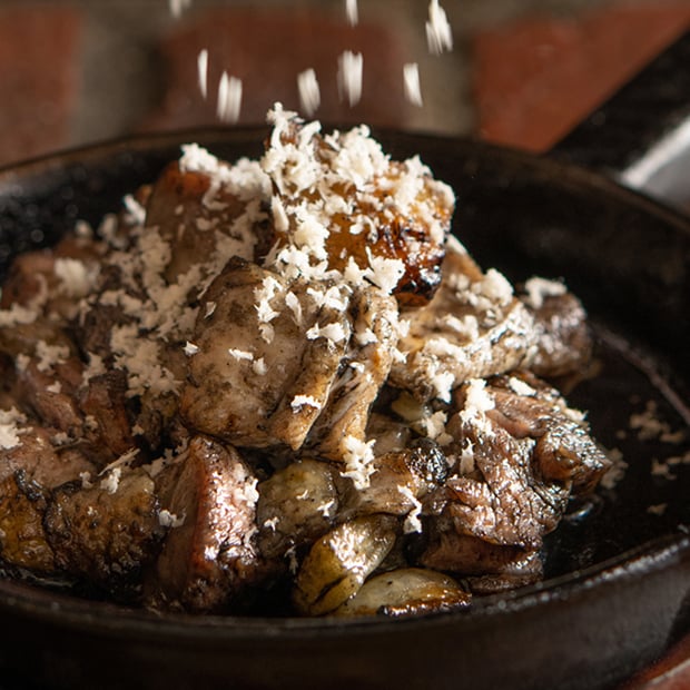 十勝の大樹漁港でとれたつぶ貝ととかちマッシュが入った、とかち産のアヒージョです。こりこり食感のつぶ貝ととかちマッシュの旨味が絶妙!※7/14まで