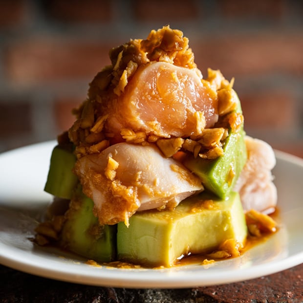 鶏とアボカドの山わさび醤油