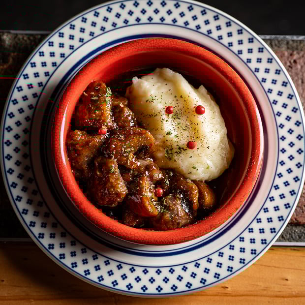 砂肝ととかちマッシュをバルサミコが効いたソースで。北海道バターたっぷりのマッシュと一緒にどうぞ!