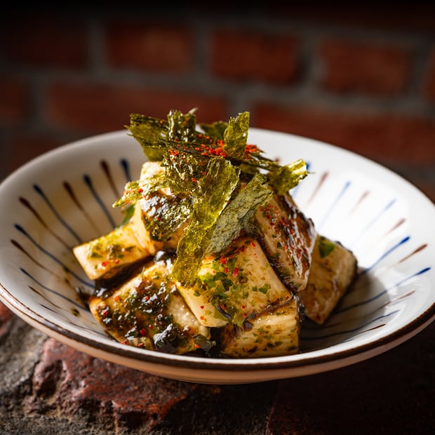 吉田さんの長いもを3種の海苔まみれに。シャキシャキ食感と海苔の風味がよく合う!