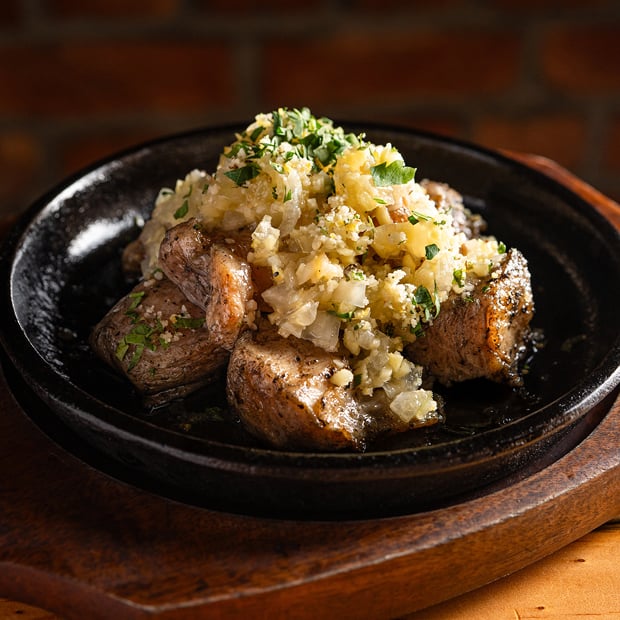 十勝産『豊西牛』バラ肉ととうもろこしたっぷりの石焼チャーハンです!ガーリックが効いたやみつき味。
