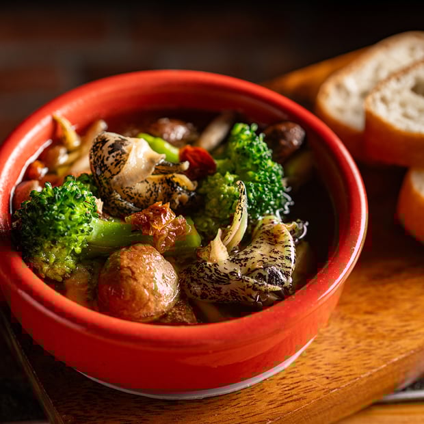 十勝産つぶ貝ととかちマッシュのアヒージョ