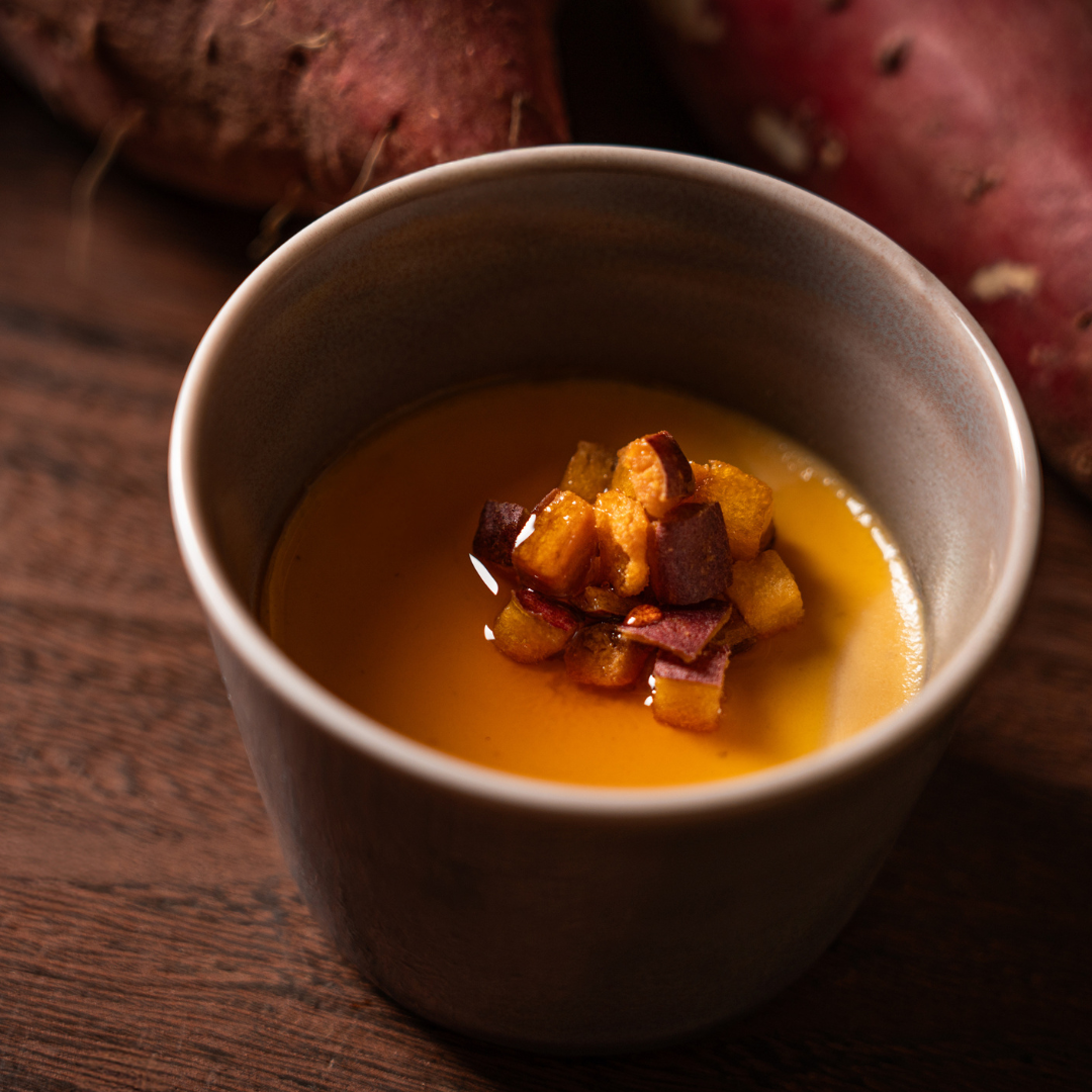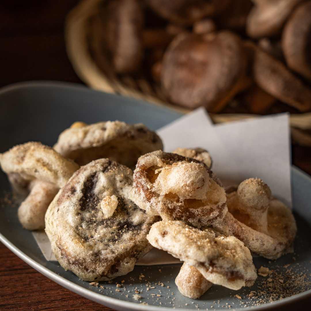 ぷるんと肉厚でジューシーな「大杉椎茸」をフリットにし、仕上げの自家製の合わせ塩をかけた一品。シンプルな調理法だからこそ、サクサクの衣に包まれた肉厚でジューシーな椎茸の旨味と優しい香りをダイレクトに味わえます。