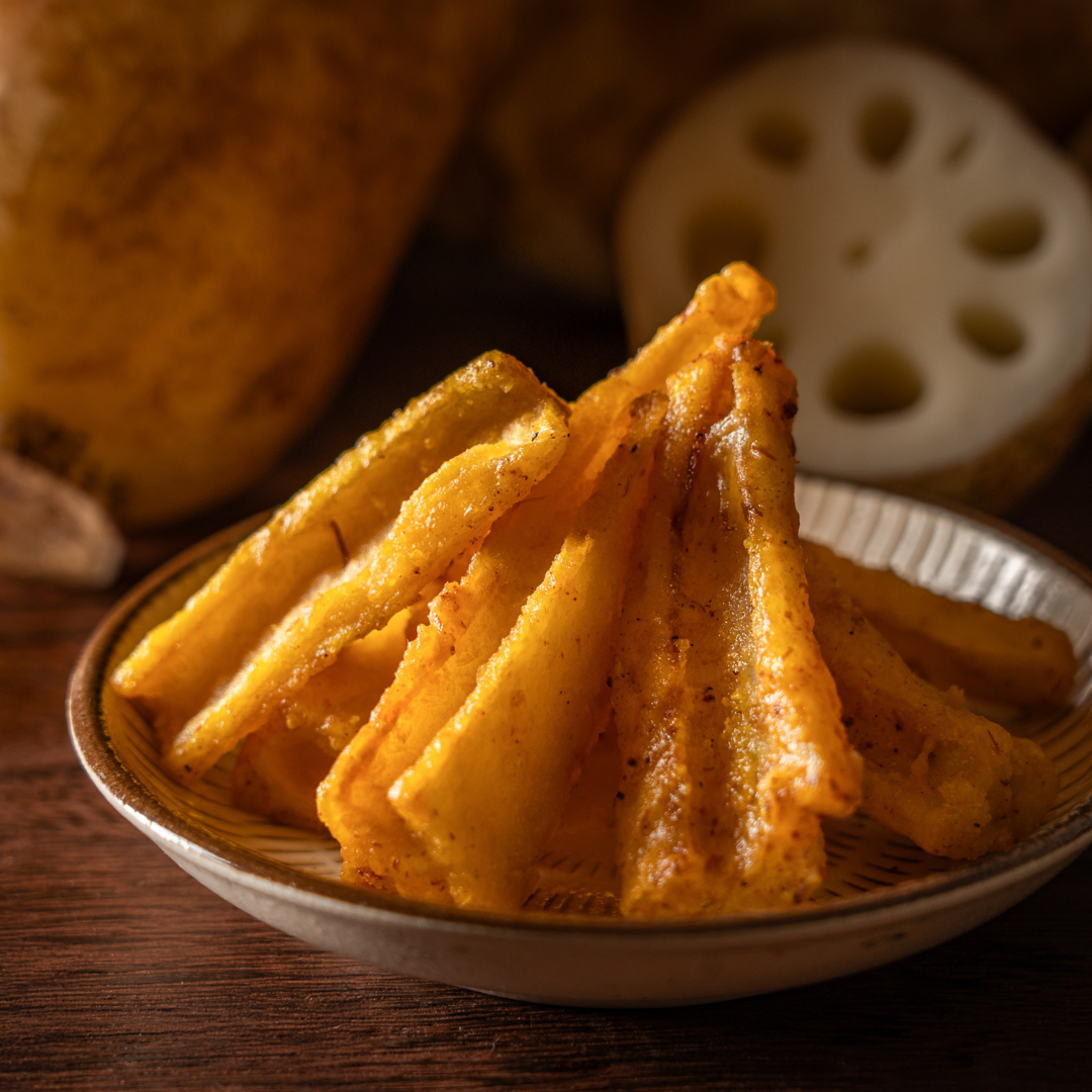 熊本県でも最大級の蓮根専門農家「カワカミ蓮根」を使い、「からし蓮根」を塚田農場らしいスタイルで味わっていただけるようカラッと揚げました。ピリッとアクセントの効いたからし蓮根でありながら、カワカミ蓮根の特長である瑞々しさと甘み、ほっくりした食感がクセになる味わいです。