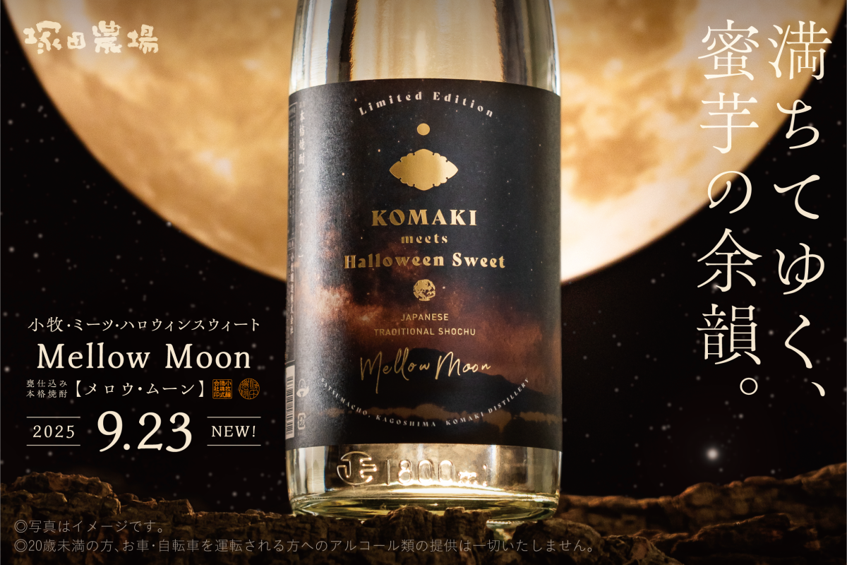 2025年9月23日(火)より、小牧醸造(鹿児島県薩摩郡)と共同開発したオリジナルの芋焼酎【Mellow Moon(メロウ・ムーン)】を330本の数量限定で販売します。